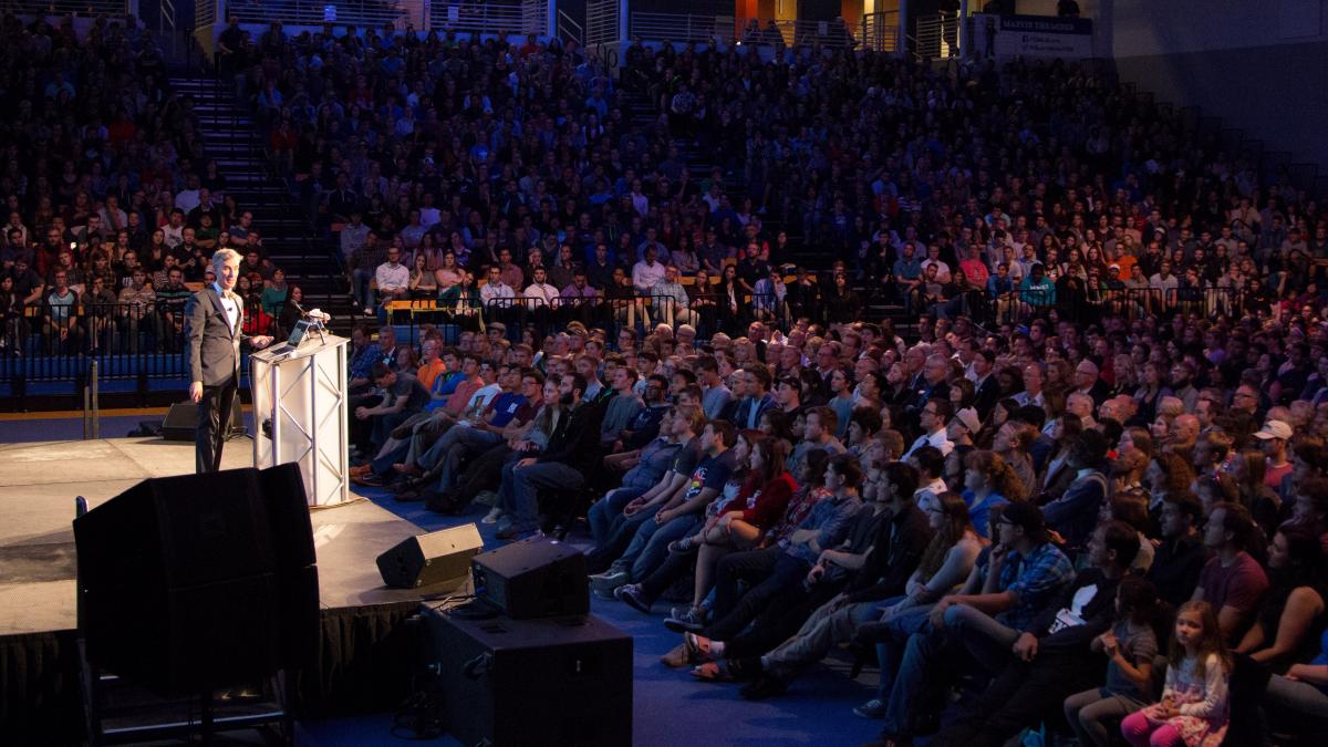 After a humorous introduction highlighting his father’s fascination with sundials and Nye’s own “MarsDials”, Nye quipped about how times have changed and reflected on his own scientific youth, including the moment he learned that there are in fact, “100 times more stars in the universe than there are grains of sand on the Earth.” One of the most memorable moments of the night was Nye’s birthday call to Neil deGrasse Tyson — last year’s Distinguished Lecturer — where he invited the audience to join him in wishing Tyson a “happy orbit around the sun.” The Mines crowd could not have roared any louder.
