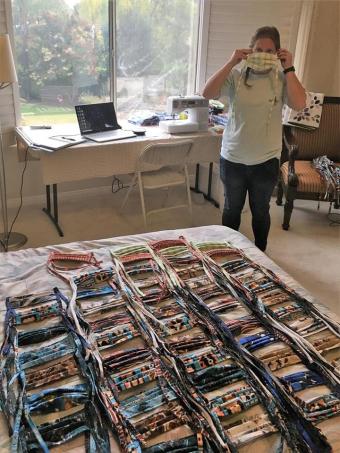 Hannah Deahl '19, a master's student in engineering and technology management, has sewn more than 100 cloth face masks from her home in California. She sent 53 of them to her cousin, who is an Emergency Department doctor in Toledo, Ohio, and another 40 went to the Claremont Care Center in her hometown.